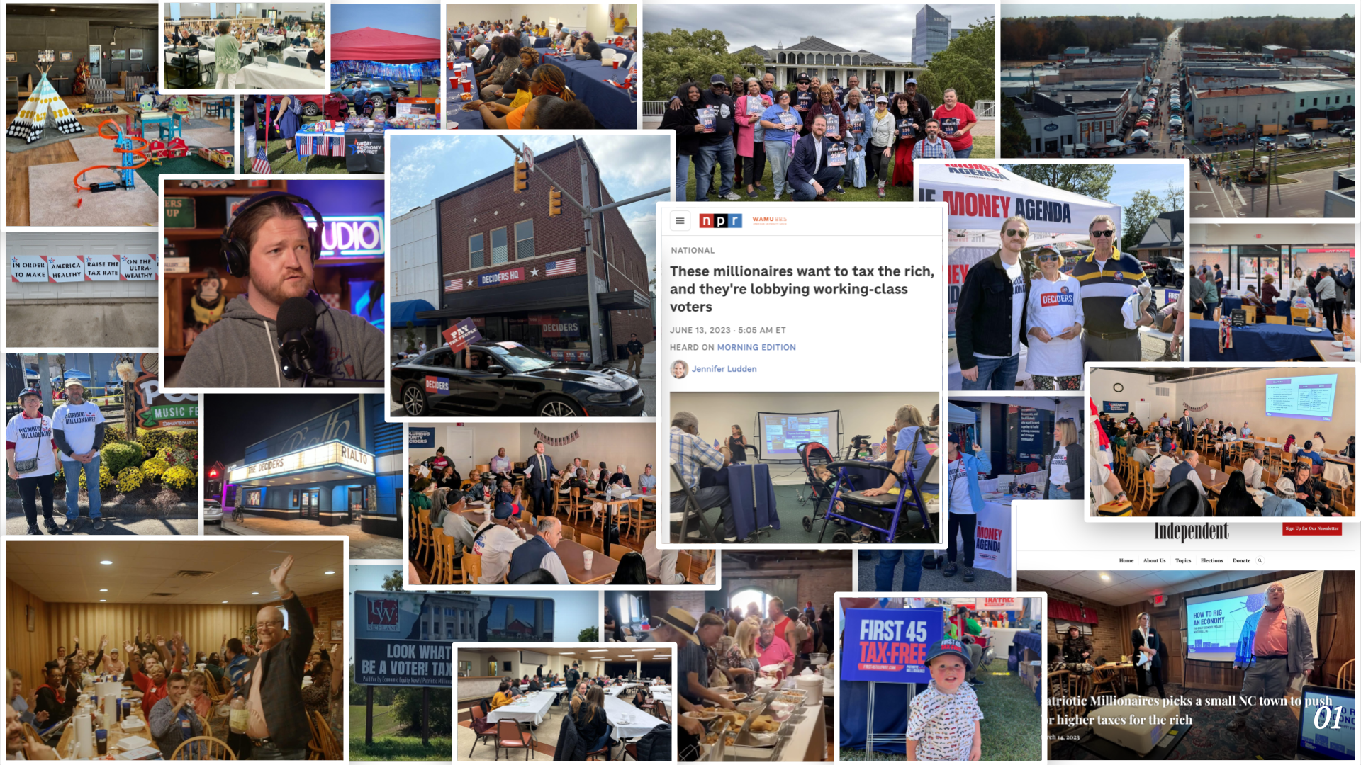 Patriotic Millionaires launched the Great Economy Project in Whiteville, NC in 2022 with sixty people from different backgrounds and a wide range of political beliefs (Republican, Independent, Democrat, and ‘Hate-Em-All’). They met regularly over dinner with members of Patriotic Millionaires and top researchers to explore how the economy works and the specific ways it is ‘rigged’ in favor of the rich and against regular working people.